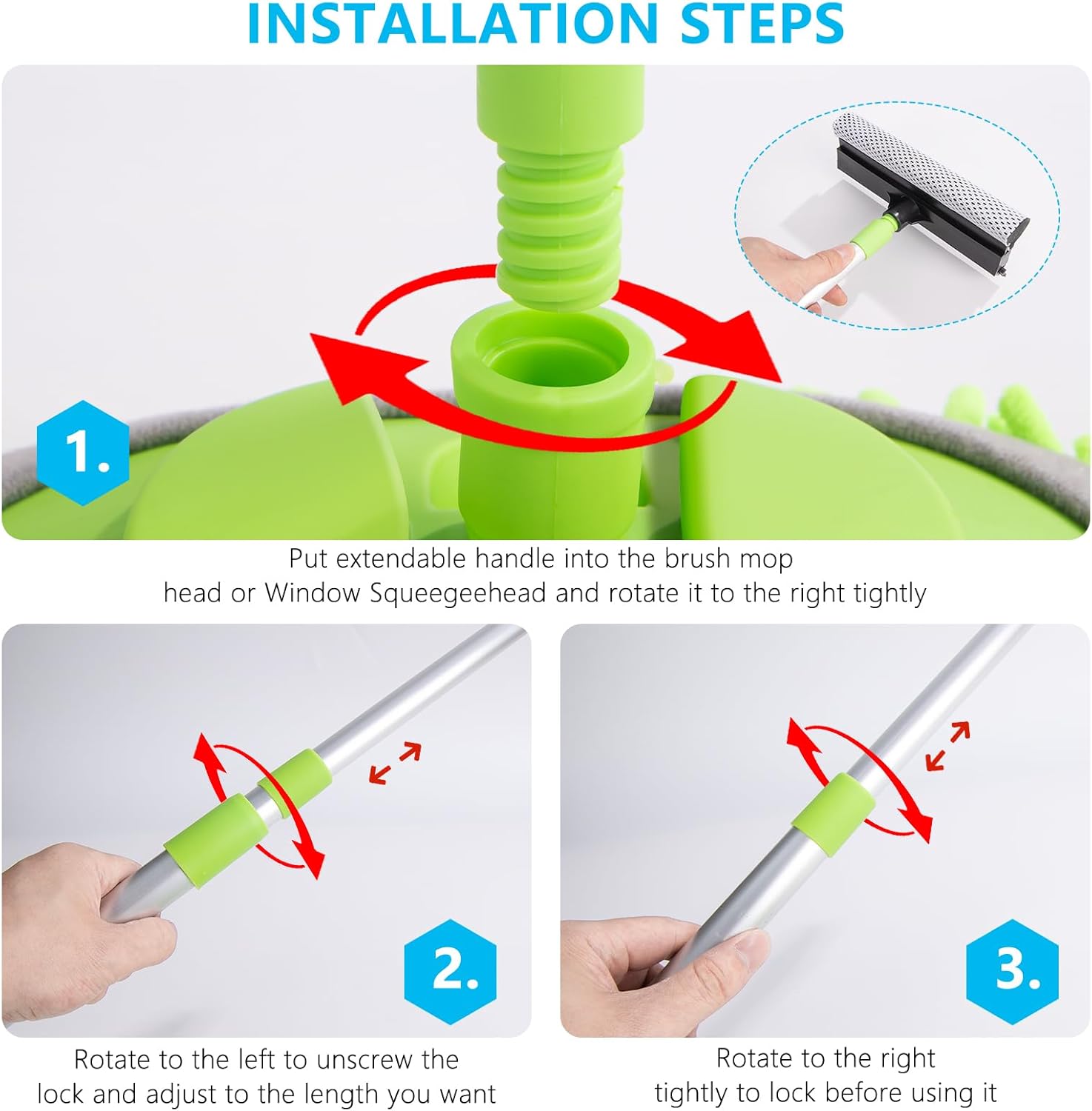 LONG HANDLE CAR WASH BRUSH: The car wash brush can be assembled and disassembled freely. When disassembled, the chenille mop head can be used as a car wash mitt or rag to clean the interior and exterior of your car. After combination, it becomes a long-handled mop to meet the needs of different heights. The long-handled window squeegee is long enough to clean car, RV, truck, and home windows without needing an additional ladder or stool