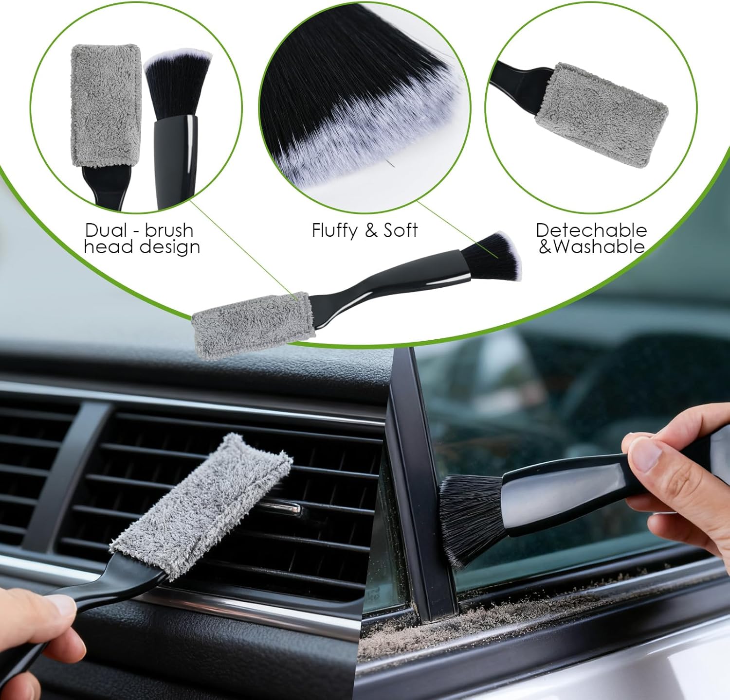 Car Detailing Brush Dual -brush head designFluffy & SoftDetechable &Washable