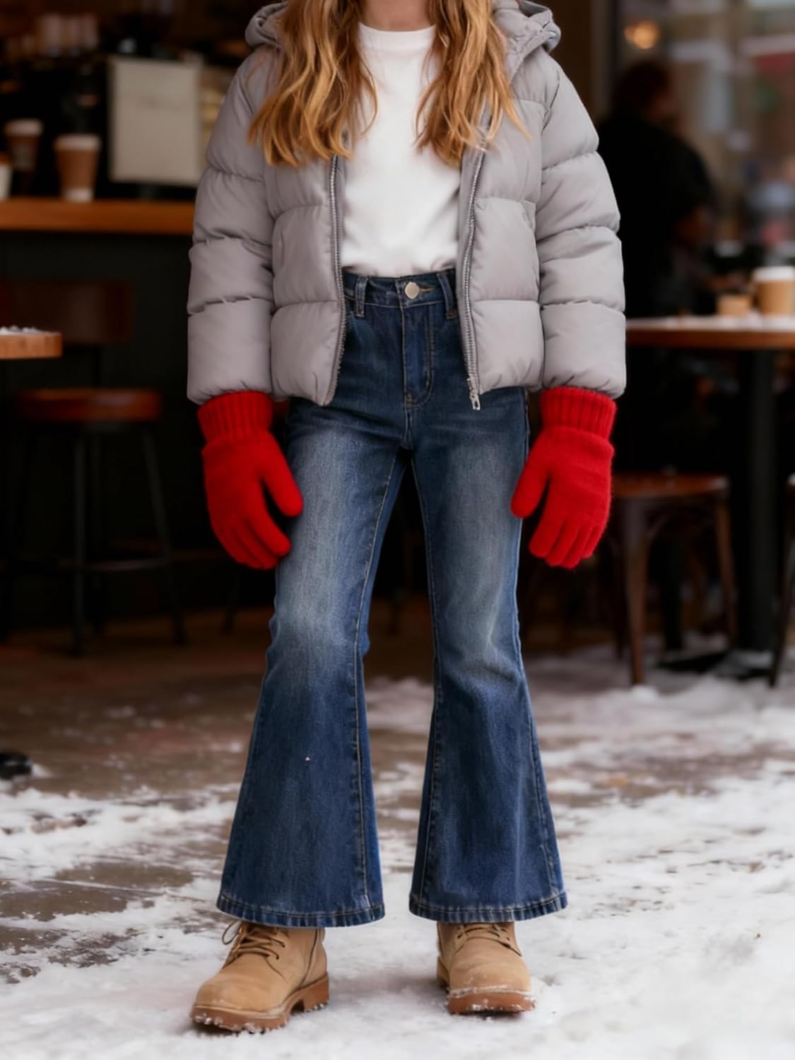 Bell Bottoms for Girls Bootcut Jeans, Warm Winter Pants Kid Jeans Fleece Lined Leggings Girls Size 8/9/10/11/12