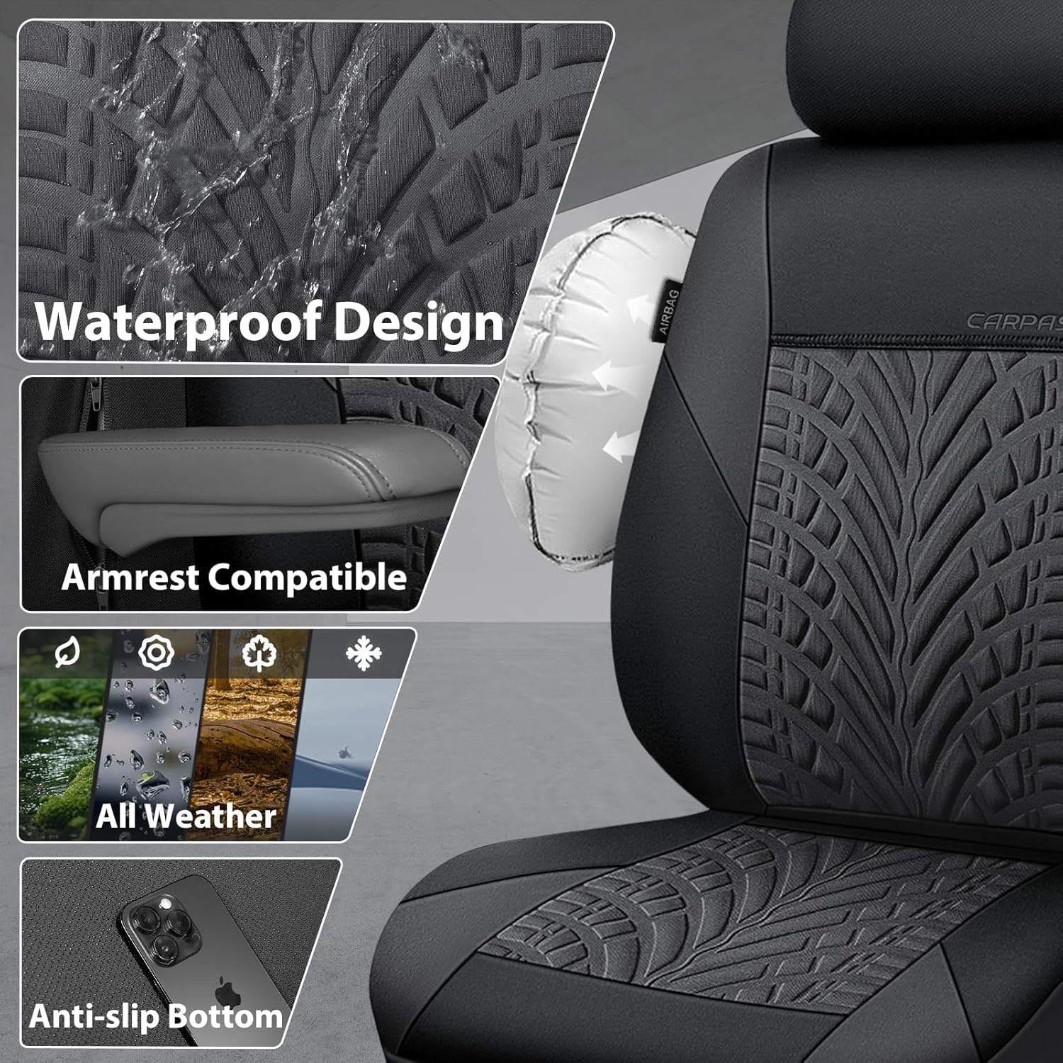 [FASHION DESIGN IN RICH AND PERFECT COLOR] Emboss tyre premium neoprene waterproof seat covers in summer warm in winter,looks gorgeous and feels really nice when driving. get the compliments by using our car seat covers NOW, very beautiful and comfortable. Match your interior look perfectly.