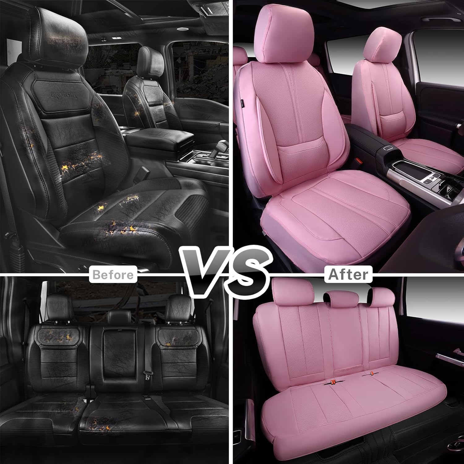 PREMIUM PINK NAPPA LEATHER: Made of high-quality Nappa leather, the pink seat covers are stylish and modern, adding a touch of fashion and luxury to your car interior. Protect your car seat covers from dust, scratches, and other possible damage. Providing full protection for your car seats