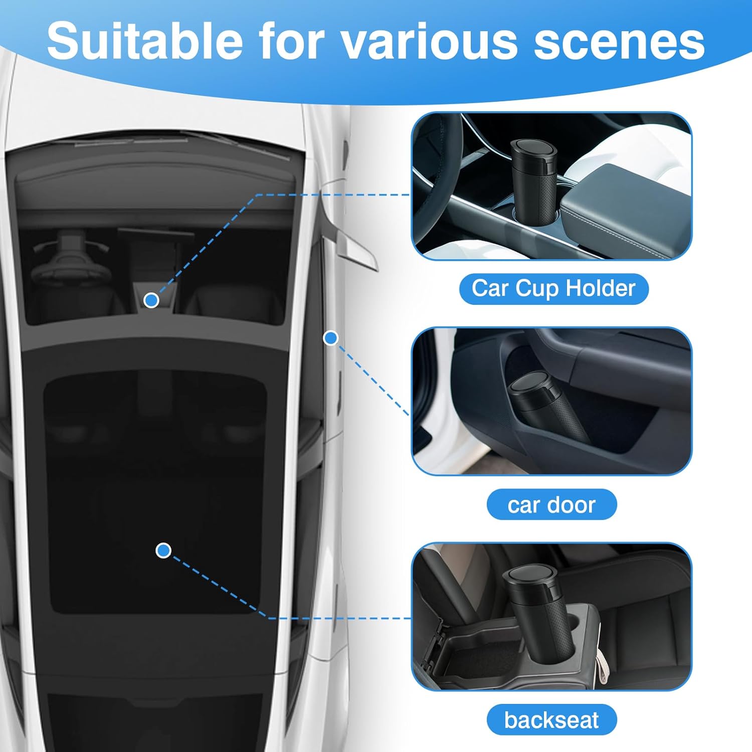 COMPACT & PORTABLE DESIGN:This mini car trash can is designed to fit perfectly in your vehicle, whether it’s placed on the back seat, door pocket, or cup holder.3.3*2.6*7.3 inch mini body can make good use of free space without wasting! making it an ideal trash can for car owners who value organization and convenience. Perfect for road trips, daily commutes, or family outings