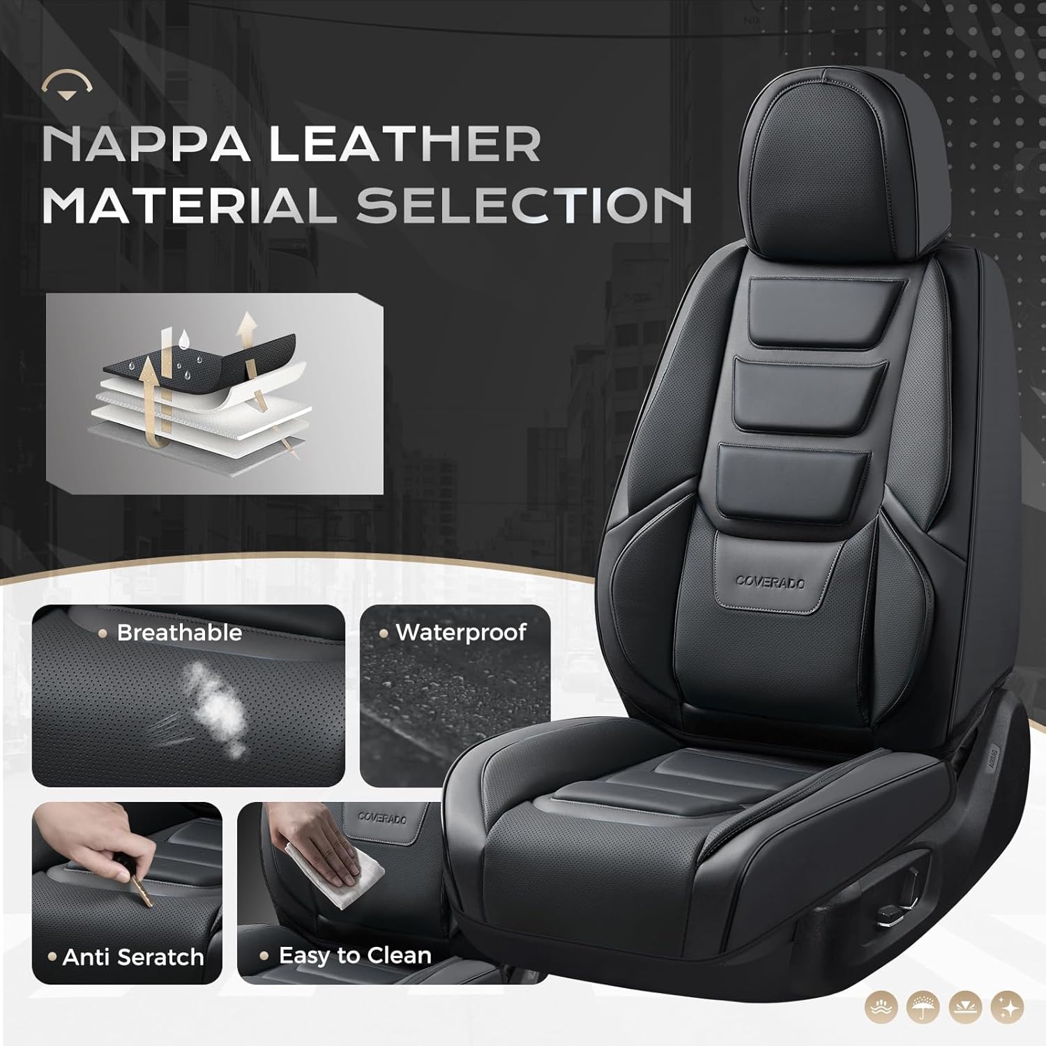 LUXURY DESIGN – Car seat protector is designed by 3D modeling, the seat covers are stylish and modern that adding a touch of fashion and luxury to your car interior. With high-quality NAPPA Leather, the covers will enhance your sense of touch