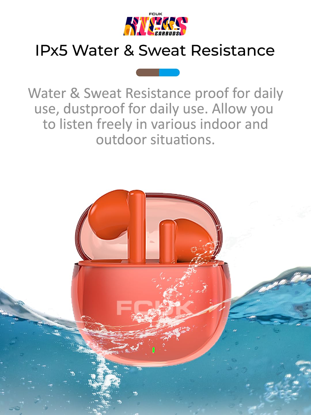 IPX4 Sweat and Water Resistance: FCUK Earpods are designed to withstand sweat and moisture with an IPX5 rating. This makes them ideal for active lifestyles, ensuring that your earbuds stay protected during your workouts.