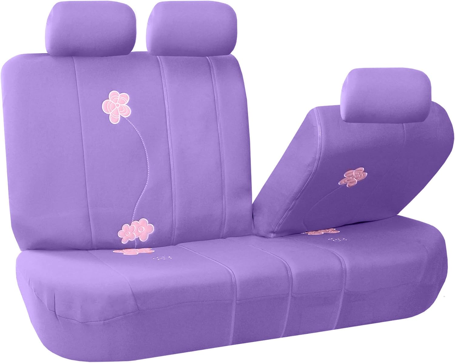 FH Group Full Set Cloth Car Seat Covers – Universal Fit, Low Back Front Seat Covers, Airbag Compatible, Split Bench Rear Seat, Washable Seat Cover for SUV, Sedan Purple