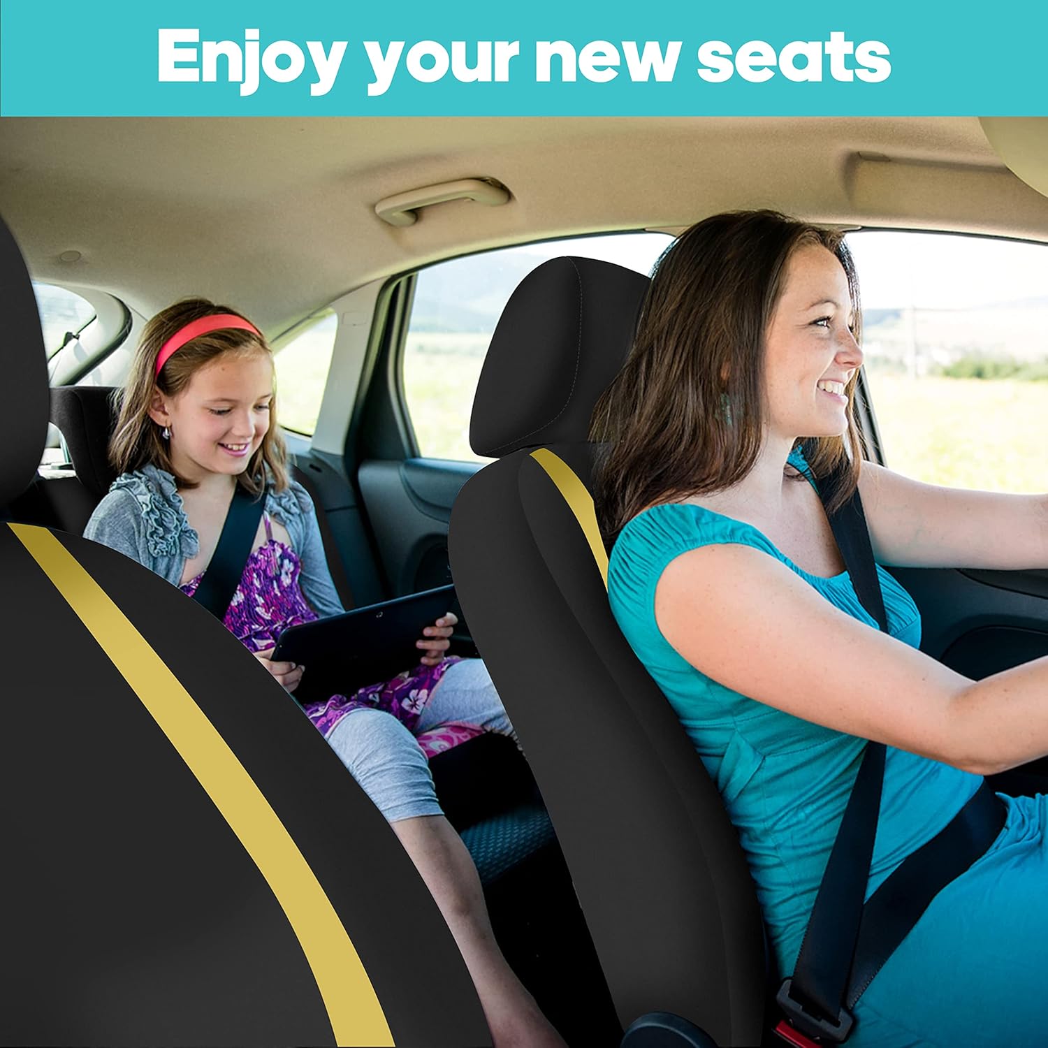 Customers find the seat covers look good and consider them ok for the price. The material quality and fit receive mixed feedback, with some saying the material is good while others find it not very good, and some saying they fit well while others report they don’t. Installation experiences are mixed, with some finding it easy while others say it’s not easy to install. Durability is a concern as the covers rip easily, and slip resistance is also mixed, with some saying they stay in place while others report they slide off continuously.