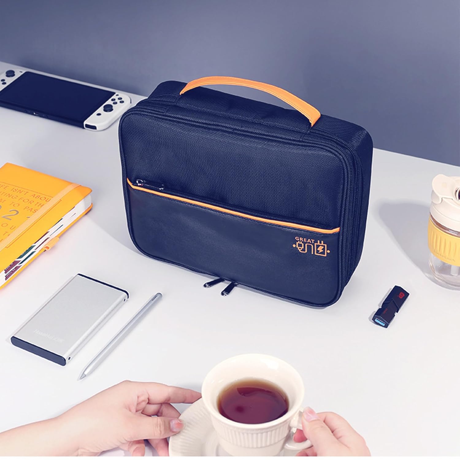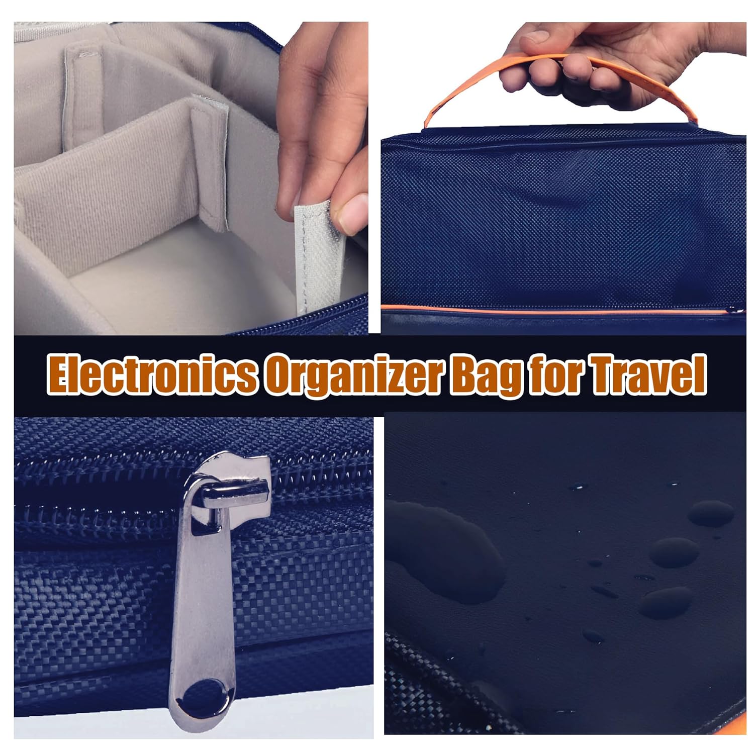 Waterproof & Protected -This cable organizer bag is made of quality and durable cation fabric, the front pocket is made of PU leather & Oxford Polyester, water and scratch-resistant, Padded foam and elastic bands, protects electronics accessories from dust, shock, and moisture.