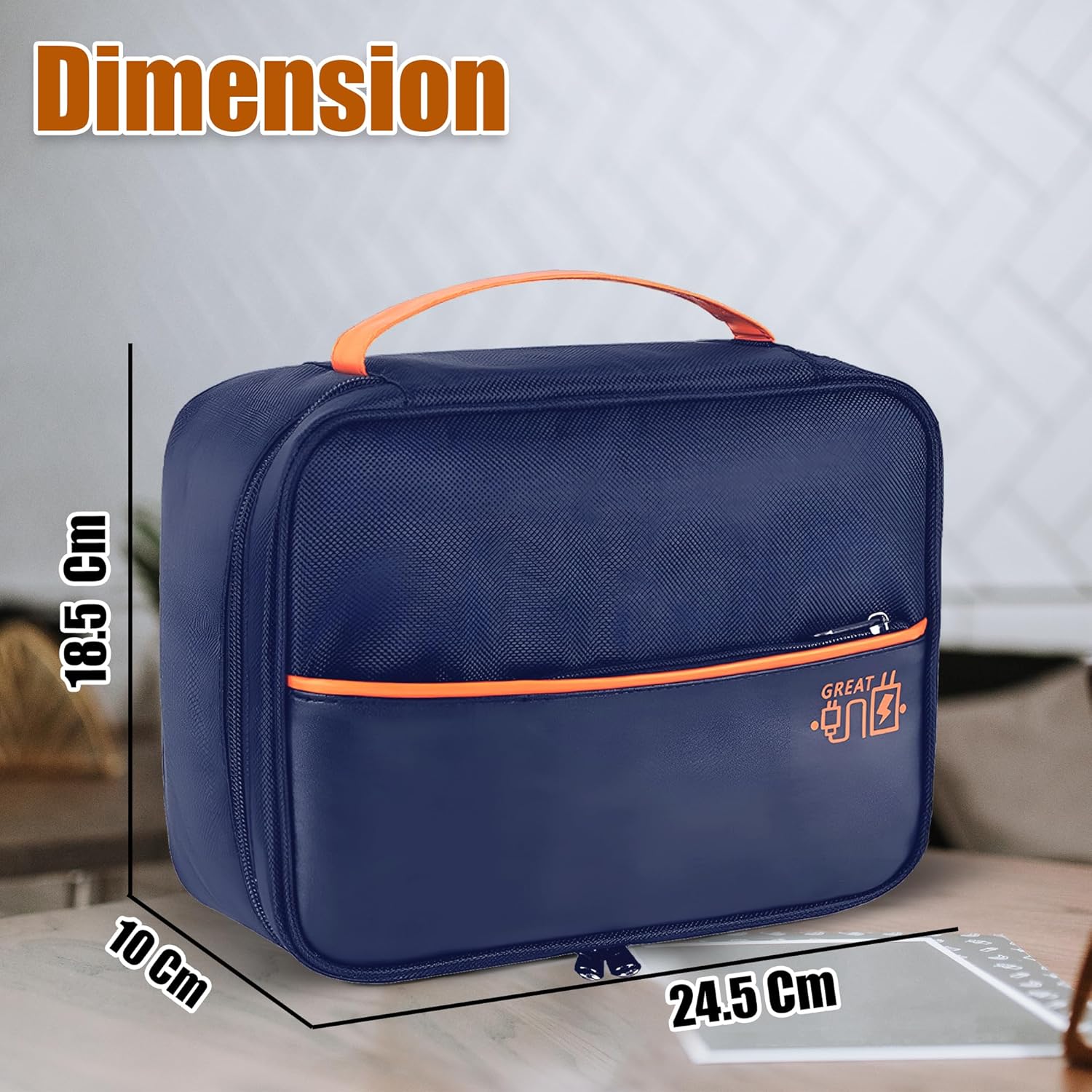 Content – 1 Pcs FunBlast Electronics Accessories Organizer Bag, Universal Carry Travel Gadget Bag, Double Layer Travel Cable Organizer Bag. Dimension: 24.5 X 18.5 X 10 Cm