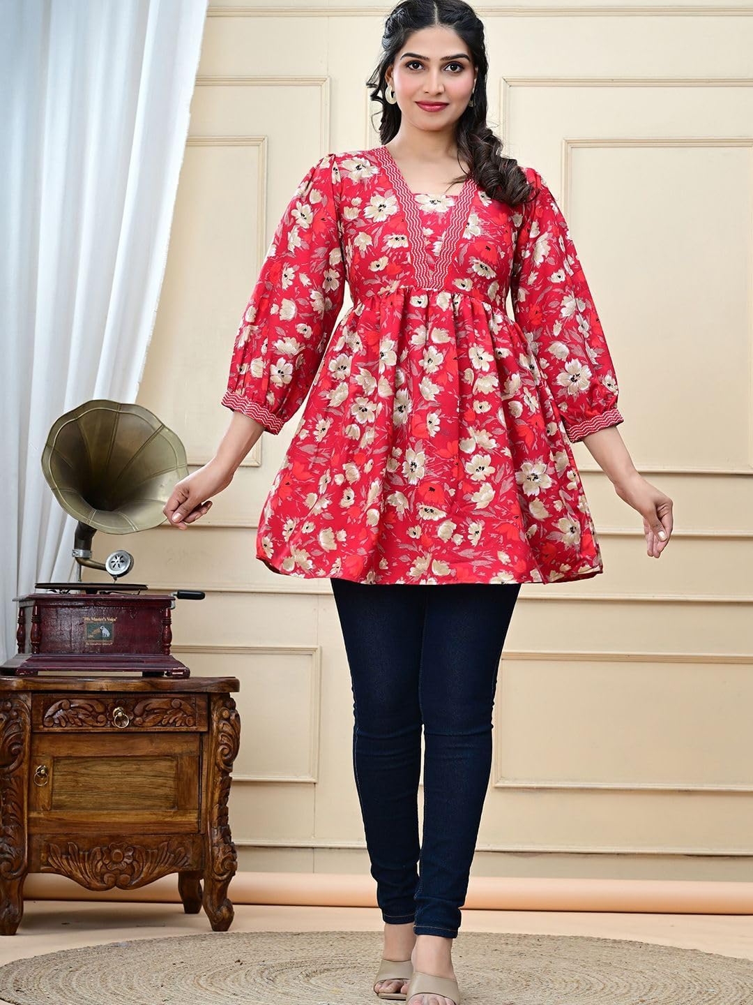 Explore our new collection designed to offer both comfort and style. Each kurti is thoughtfully crafted with a flattering fit and eye-catching floral prints. Multiple views help you understand the design, fit, and fall of the fabric—so you can shop with confidence.