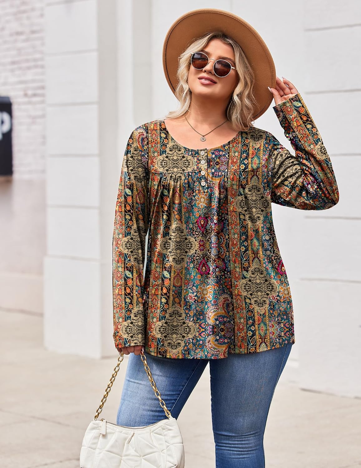 Buyer Show IN’VOLAND Plus size boho tops for women