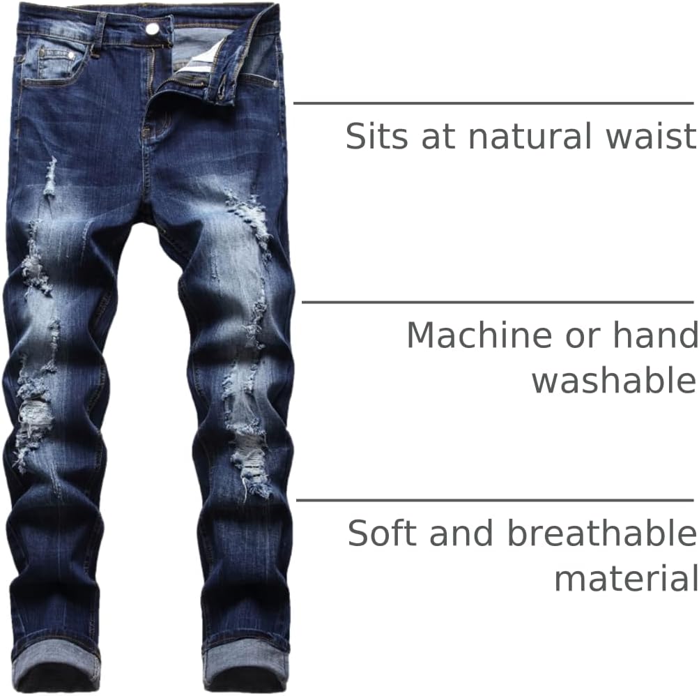 JUNBAOSS Men’s Slim Fit Stretch Jeans Ripped Skinny Jeans for Men, Distressed Straight Leg Fashion Comfort Flex Waist Pants