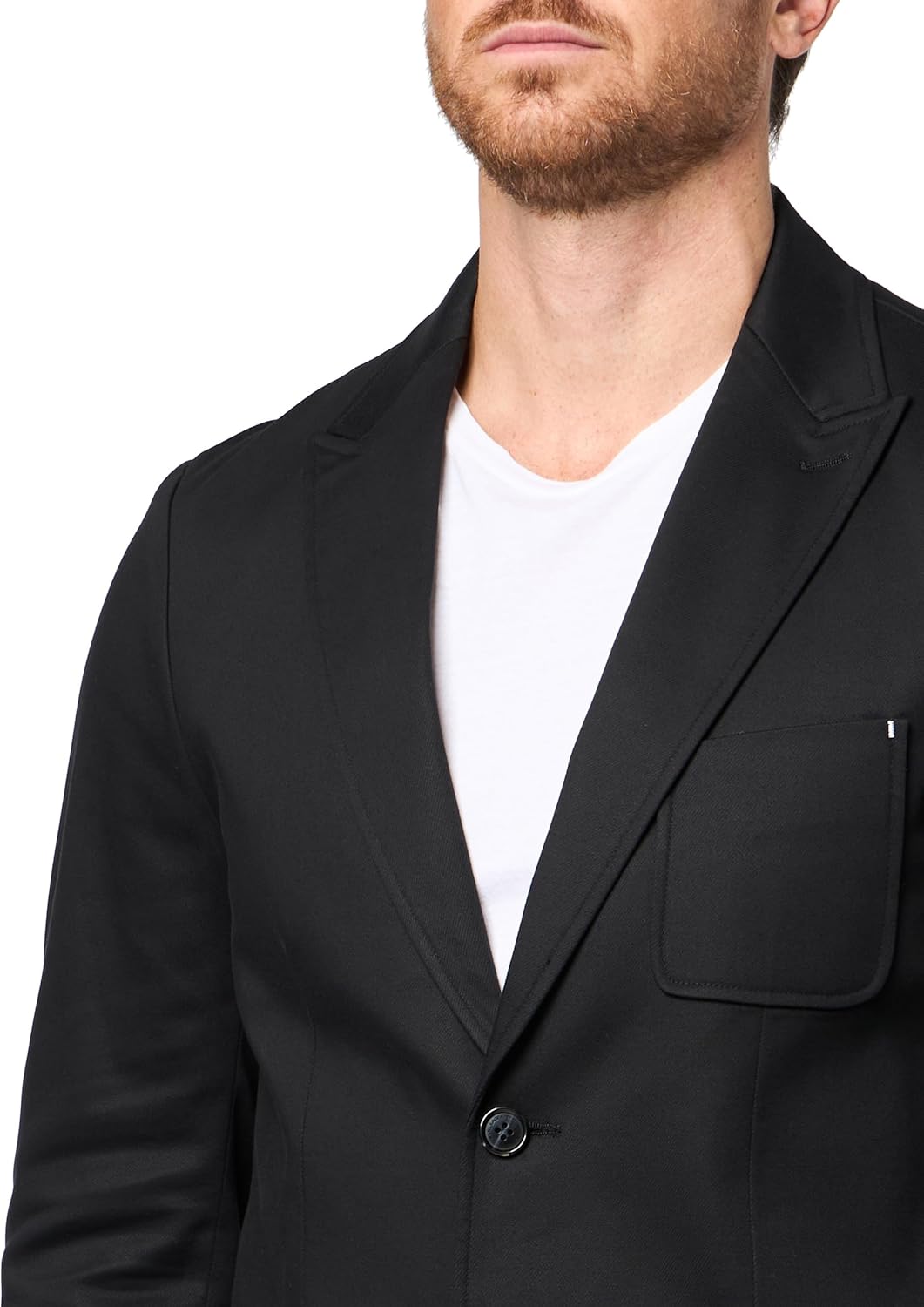 This Karl Lagerfeld Paris Men’s Sportswear blazer is a button front notch collar pockets long sleeve blazer