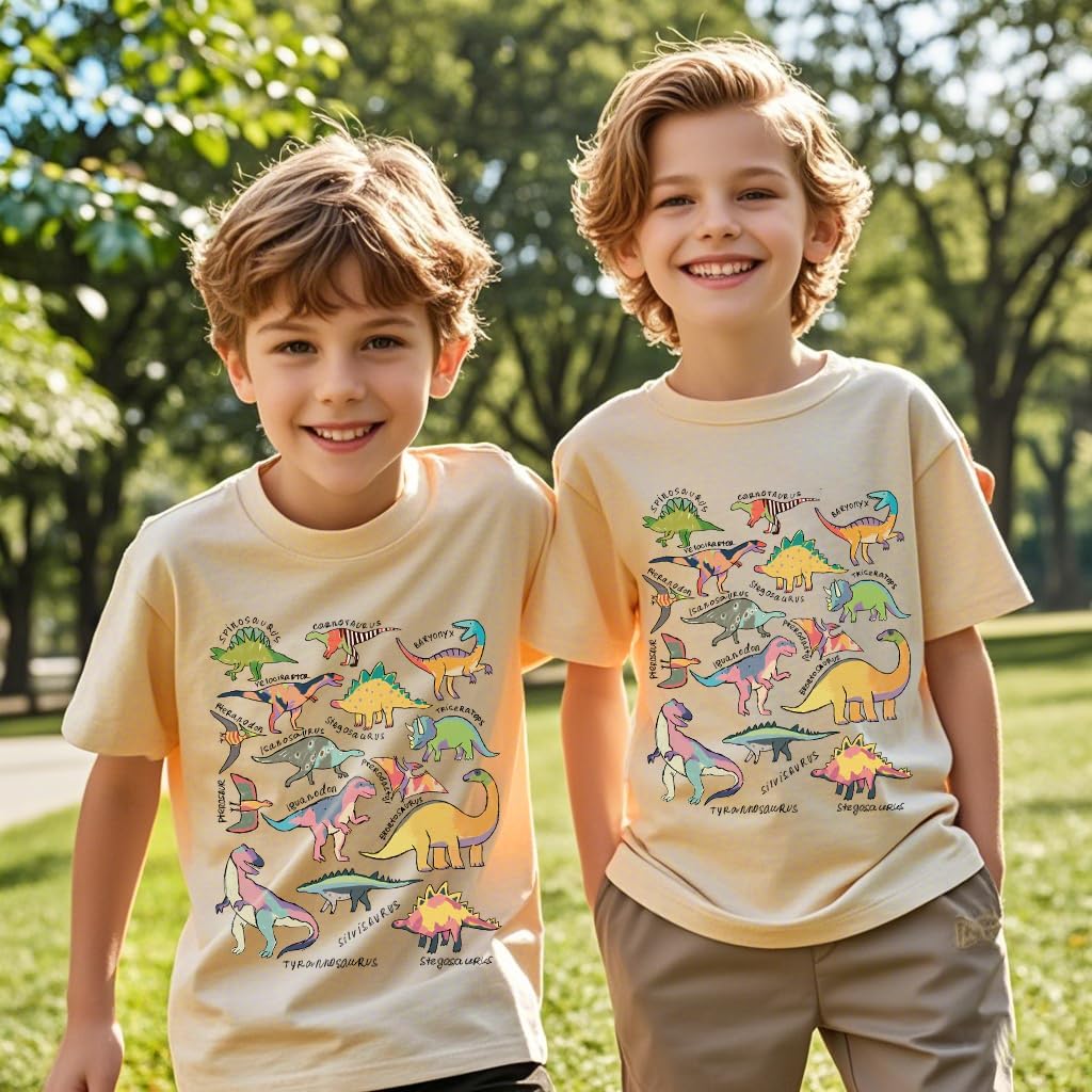Kids Short Sleeve Tees Toddler Crewneck T-Shirts Boys Girls Dino Raccoon Excavator Silly Goose Flower Girl Tops 2-7 Years