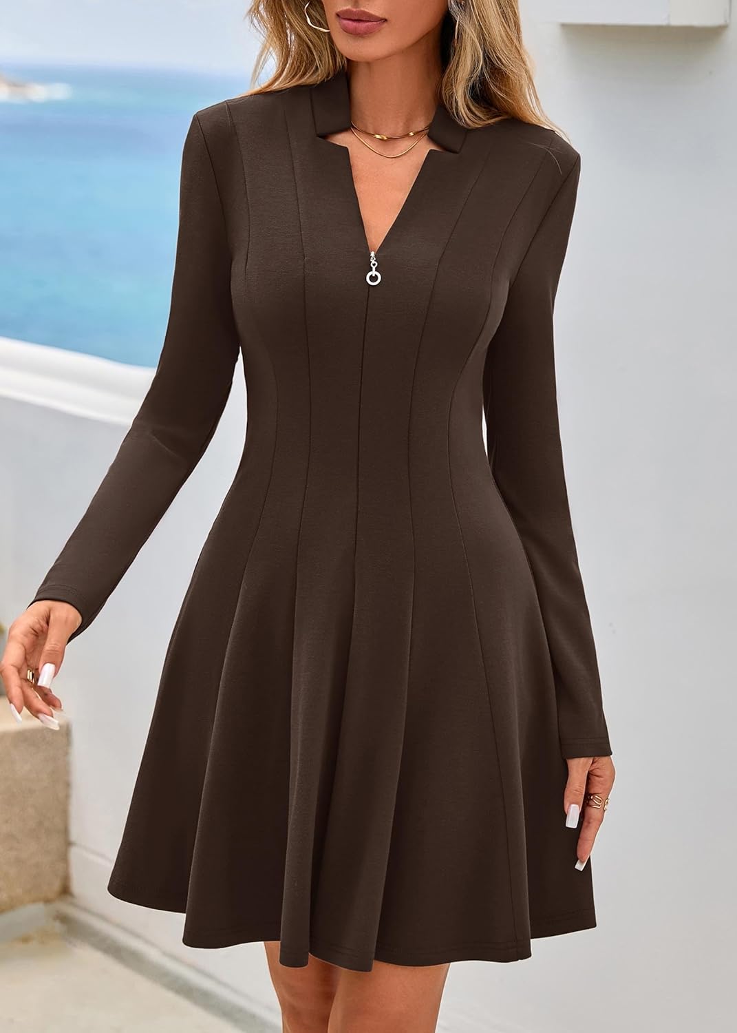 Lazysmile Cocktail Dresses for Women Fall Outfits 2025 Long Sleeve Zip Up Dress