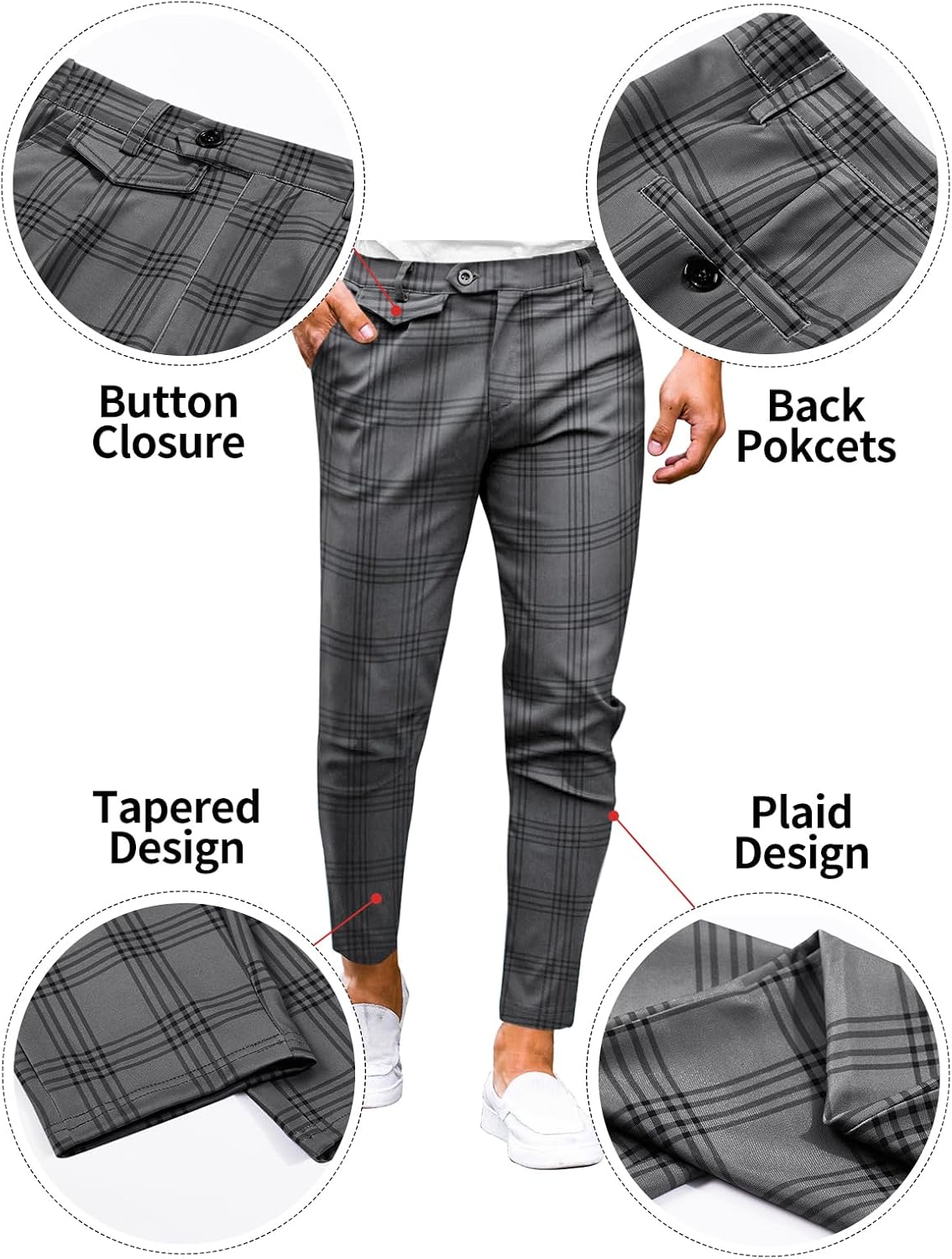 Coutgo Mens Chinos Slim Fit Pants Flat Front Stretch Skinny Tapered Dress Pants Comfort Casual Solid Trousers