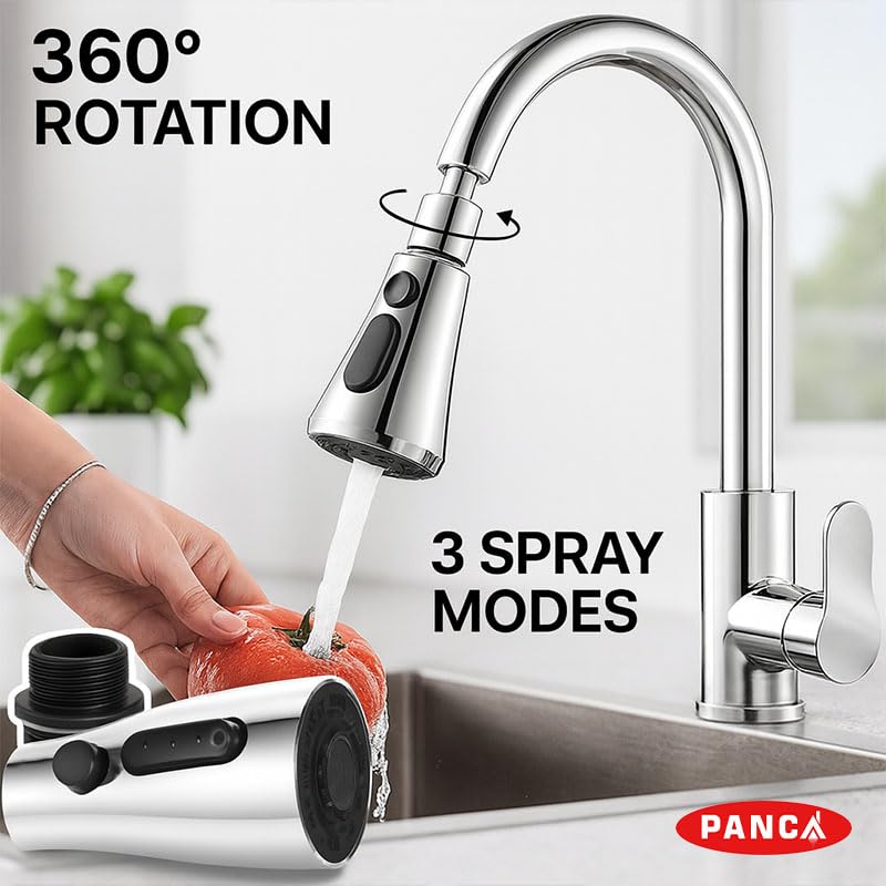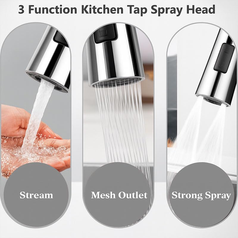 3 Adjustable Spray Modes – Choose from jet, shower, or mixed mode for different needs; perfect for washing vegetables, cleaning sink, or gentle flow for water saving.