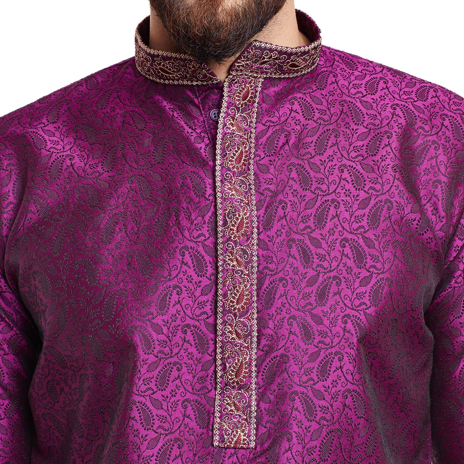 SOJANYA as a brand brings you quality and affordability. In market since 1958, we take pride in our commitment to maintain quality standards in each piece manufactured by us. Complete your ethnic look by wearing this dhoti kurta set by Sojanya. A true epitome of class, this dhoti kurta set will surely reflect your impeccable taste in fashion. Made from slik blend fabric, this set will surely make you the cynosure of all eyes. Team it with a pair of mojris or kolhapuri chappals to give a classy touch to your ethnic look.